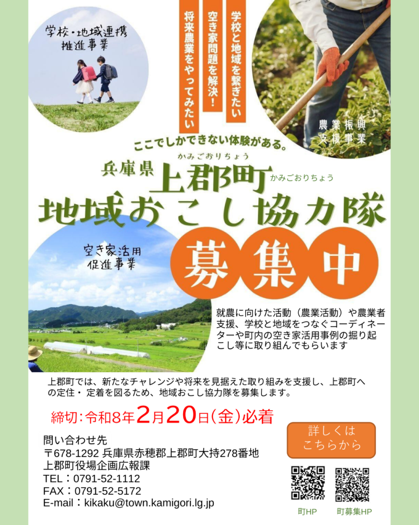 上郡町では令和8年度地域おこし協力隊として、