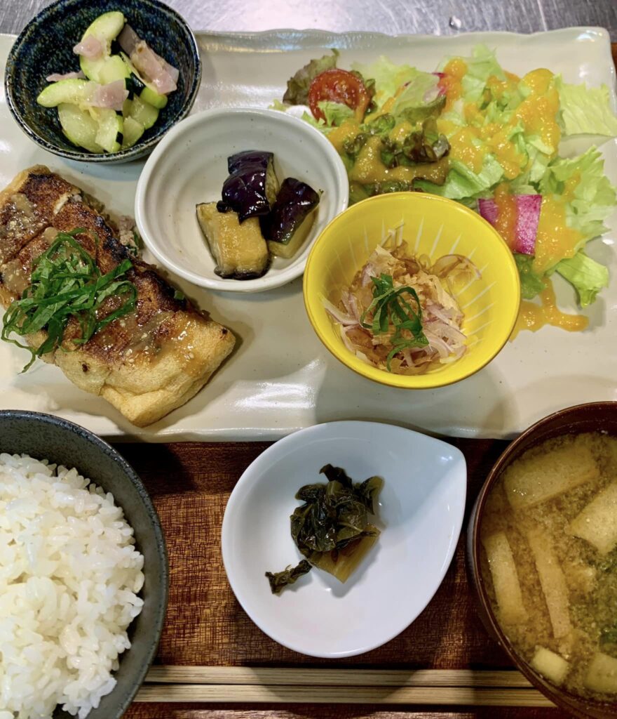 カフェは、築120年の古民家を出来るだけ活かしてDIYでセルフリノベートし、平成30年5月に〝自然菜園&カフェ「遊楽里」″をオープンしました。妻が作る一汁五菜の週替わりランチや手作りスイーツが人気でたくさんのお客様から喜んでいただいており、セカンドライフの生きがいに感謝しています。