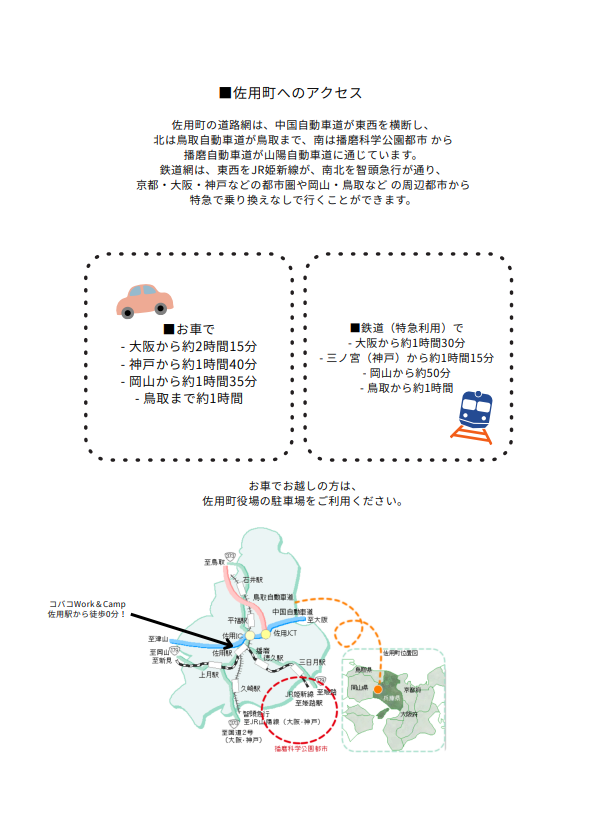 ※遠方の方は、前泊できますので、ご希望の方は、西播磨暮らしサポートセンターまでお問い合わせください。