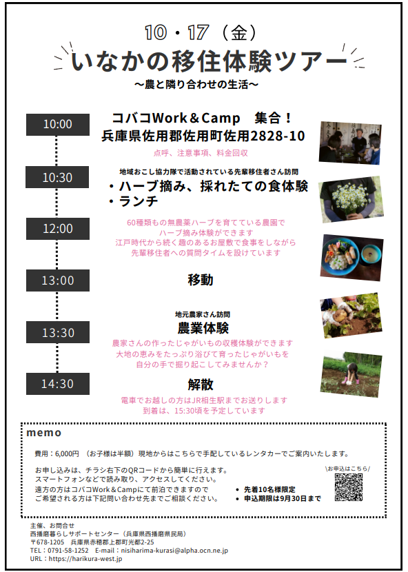 少しでも興味がある方にとって、西播磨での暮らしを肌で感じ、移住への一歩を踏み出す絶好のチャンスです。
