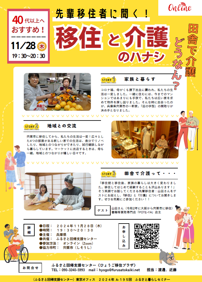 兵庫県宍粟市へ移住することを決めました。当セミナーでは『移住と介護』について、